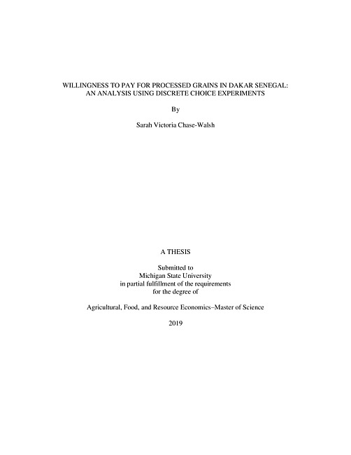 Willingness to pay for processed grains in Dakar, Senegal : an analysis using discrete choice experiments