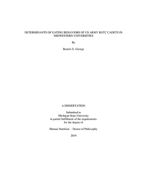 Determinants of eating behaviors of us army ROTC cadets in Midwestern universities