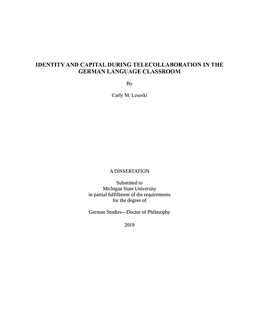 This dissertation presents findings from a research project on a 7-week-long telecollaboration project between students at a US-American university and students at a Southern German university. This dissertation utilizes theories of identity and capital to analyze the experiences of two heritage language learners (HLLs) during telecollaborative exchanges, as well as in classroom discussion forum posts and in a follow-up interview. Identity refers to a person's understanding of their place in a given context, as well as their understanding of their possibilities for the future (Darvin & Norton, 2015; Norton, 2013). Capital refers to the social goods one possesses, such as wealth, knowledge, networks, and language abilities (Darvin & Norton, 2015). While each of the two subjects came from different backgrounds and had different relationships to their German heritages, both negotiated their identities and their relationships to their capital during the telecollaboration. The results of this study support previous findings which suggest that telecollaboration can offer HLLs a place to negotiate their identities as members of target language-speaking communities (see Telles, 2015). While Kathy was able to negotiate a more stable identity and sharpen her focus on her imagined futures, Lilly's experience was marked by a greater deal of ambiguity toward both her identities and her capital. This dissertation offers pedagogical, theoretical, and methodological implications, as well as directions for future research on HLLs' identities and capital during telecollaboration.