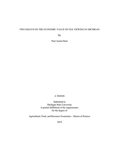 Two essays on the economic value of elk viewing in Michigan