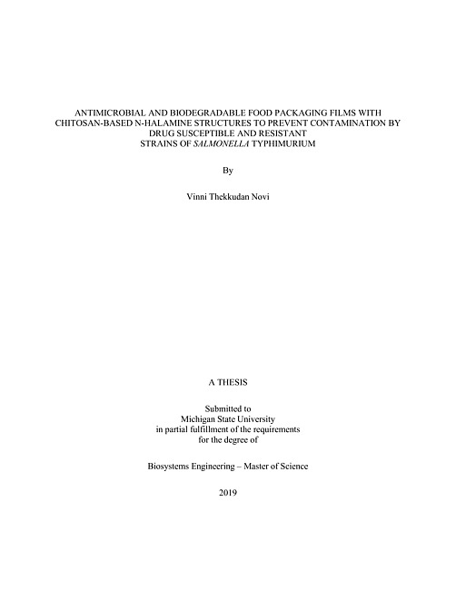 Antimicrobial and biodegradable food packaging films with chitosan-based N-halamine structures to prevent contamination by drug susceptible and resistant strains of Salmonella typhimurium