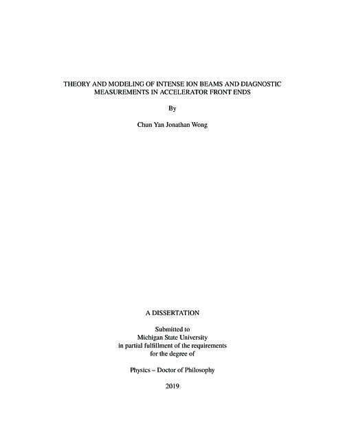 Theory and modeling of intense ion beams and diagnostic measurements in accelerator front ends