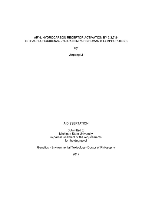 Aryl hydrocarbon receptor activation by 2,3,7,8-tetrachlorodibenzo- P-dioxin impairs human B lymphopoiesis