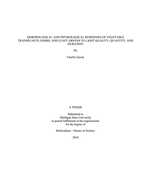 Morphological and physiological responses of vegetable transplants, herbs, and leafy greens to light quality, quantity, and duration