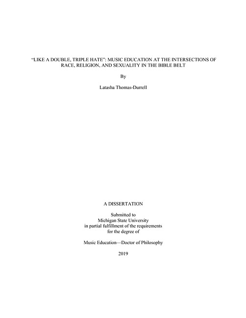 "Like a double, triple hate" : music education at the intersections of race, religion, and sexuality in the Bible belt