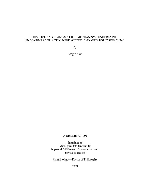Discovering plant-specific mechanisms underlying endomembrane-actin interactions and metabolic signaling
