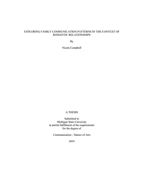 According to family communication patterns theory (FCP; Koerner & Fitzpatrick, 2002), families vary in the extent that they encourage open discussion on a wide range of topics (conversation orientation) and the extent to which children are pressured to adopt the parents' attitudes and beliefs (conformity orientation). Research has indicated that having a high family conformity orientation can be later problematic for children in terms of adjustment and psychosocial outcomes (Hesse, Rauscher, Goodman, & Couvrette, 2017, Ledbetter, 2009; Orrego & Rodriguez, 2001) and that family communication environments can influence communication in adult romantic relationships (Young & Schrodt, 2016). The following study tests whether growing up in an environment that discourages independent thought and requires one to adhere to family beliefs leads to a greater tendency of that individual to conform to a romantic partner. In addition to conceptualizing conformity orientation in romantic relationships and measuring it with a new conformity orientation scale adapted for romantic relationships (RRCOS), the current study explores associations between family and romantic conformity orientation, family conversation orientation, attachment style, and relationship satisfaction. In line with previous findings regarding family environments' influence on relationships, a significant association was found between family and romantic partner conformity.