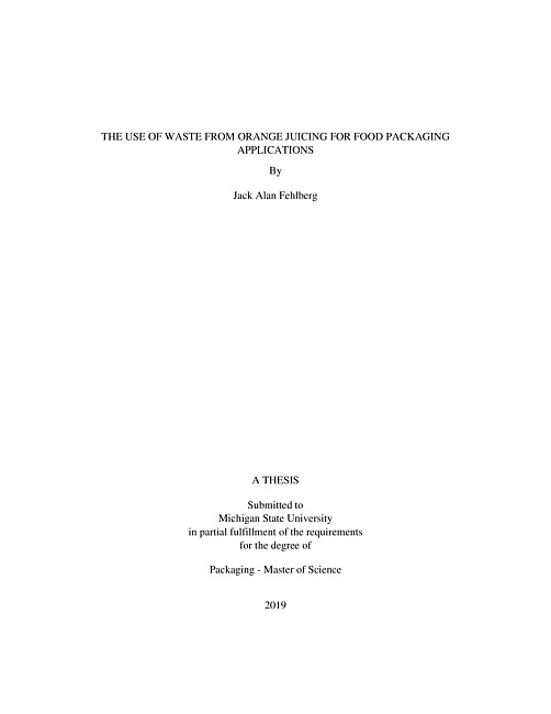 Utilization of orange juicing waste (OP) as a filler material within a polymer matrix can add value to this agricultural waste and reduce dependency on non-renewable resources. This study aims to study the impact of OP filler's physical characteristics including size, loading, and retention or removal of zest on the properties of linear low density polyethylene (LLDPE) and to produce LLDPE/OP films by blown-film extrusion. LLDPE/OP sheets with zest exhibited decreased thermal stability, larger OP agglomerates, worsened dispersion, and darker yellower colors and can act as UV- and light-absorbers. Larger OP particles increased air bubble formation, decreased mechanical properties, worsen dispersion, and produced darker yellower composites. Higher OP loadings resulted in LLDPE/OP composite sheets that have darker yellower color, decreased mechanical properties, and increased the size of OP agglomerates, as well as improved distribution and worsened dispersion. LLDPE/OP sheets that had properties most like neat LLDPE were sheets containing OP without zest and smaller particles sizes. This OP was used to determine maximum OP loading for LLDPE/OP films produced by blown-film extrusion. The LLDPE/OP films were subject to a sensory similarity triangle test and a comparison of package acceptance when different OP loading was used. This study found no difference in sensory qualities of bread when packaged in LLDPE/OP to neat LLDPE films. OP loading did not influence consumer perceptions of overall liking, appearance, surface roughness, color, or smell when LLDPE/OP films with 5 and 11.5% OP loadings were compared. This study demonstrates that OP waste can be converted and physically modified into a usable filler for plastic films for food packaging applications without altering the quality of the food product.