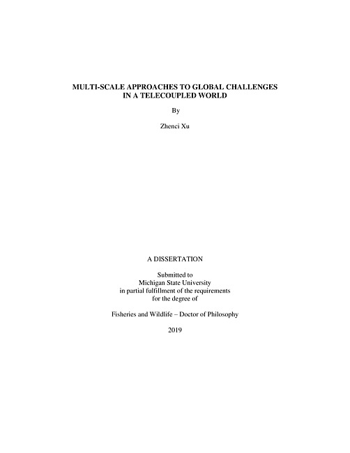 Global challenges such as water crisis, energy insecurity, biodiversity loss, land use change and climate change pose threats to the world's sustainability. Globalization enhances the connection of distant areas through various environmental and socioeconomic interactions. To solve the increasing challenges of achieving global sustainability in the context of globalization, the new telecoupling framework (socioeconomic and environmental interactions over distances) is proposed (Liu et al. 2013). A growing body of research has been exploring the dynamics, impacts, mechanisms, and structure of distant interactions involving global challenges. However, based on the telecoupling framework, we find no research that studies the evolution of multiple global environmental and socioeconomic interaction networks together. Also, the interactions between two kinds of distant virtual resource transfers simultaneously and the drivers of virtual resource transfers at the national scale are still unknown. Little research explores the evolution of virtual resource transfers at a national scale. The impacts of distant interactions on sending systems' sustainability at the regional scale has rarely been quantified and systematically analyzed. To address these knowledge gaps, I did the following work: First, I assessed the evolution of global telecouplings such as water, energy, land, CO2 emission, nitrogen emission and financial capital transfer networks and discussed how they have impacts on global water scarcity, energy crisis, land use change, global warming and nitrogen pollution. Second, I evaluated the interactions across two kinds of national telecouplings (interregional water and energy networks), and discussed their implications for the trading region's water scarcity and energy security, and explore the drivers of national telecouplings. Third, I studied the evolution of national virtual energy network. Fourth, I explored the water and food sustainability in a sending system of telecoupling (food transfer aimed at ensuring food security in the receiving system) at the regional scale. These four works have been accomplished in four chapters, respectively.Main findings from this dissertation include: At the global scale, the volumes of all these flows, except for land flow, increased over time. Financial capital flows increased most (188.9%), followed by flows of CO2 (59.3%), energy (58.1%), water (50.7%) and nitrogen (10.5%), while land transfer decreased by 8.8%. At the national scale using China as a demonstration, 40% of provinces gained one kind of resource (either water or energy) through trade at the expense of losing the other kind of internal resource (energy or water), and 20% of provinces suffered a double loss of both water and energy. The remaining provinces gained both water and energy. Over time, the total virtual energy transferred from energy-scarce to energy-abundant provinces increased from 43.2% to 47.5% from 2007 to 2012. At a regional scale, irrigated agriculture's annual water footprint in the North China Plain increased from 53 billion m3 in 1986 to 78 billion m3 in 2010. All counties faced unsustainable water use - local water consumption was greater than local renewable freshwater - even as the average crop water productivity increased from 0.90 kg.m-3 to 1.94 kg.m-3. These findings provide useful information for policy making to address environmental and socioeconomic challenges and build distant cooperation across multiple scales.