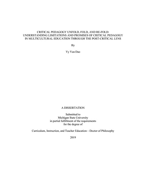 Critical pedagogy unfold, fold, and re-fold : understanding limitations and promises of critical pedagogy in multicultural education through the post-critical lens