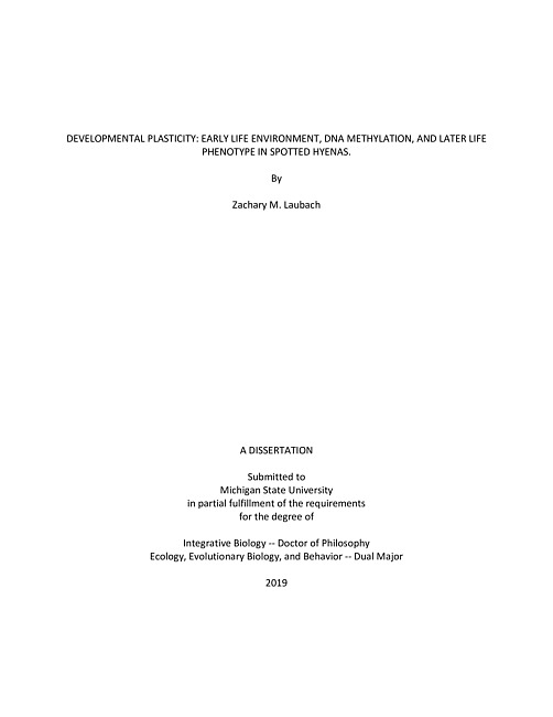 Developmental plasticity : early life environment, DNA methylation, and later life phenotype in spotted hyenas