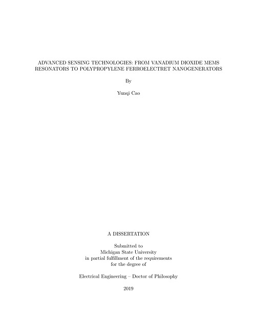 Advanced sensing technologies : from vanadium dioxide MEMS resonators to polypropylene ferroelectret nanogenerators