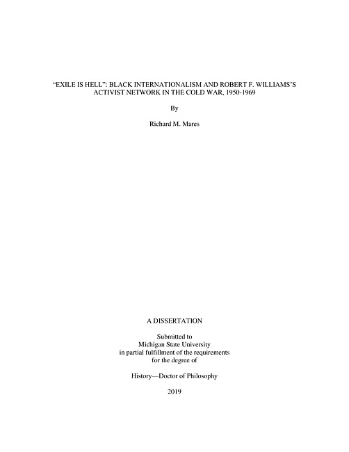 "Exile is hell" : Black internationalism and Robert F. Williams's activist network in the Cold War, 1950-1969