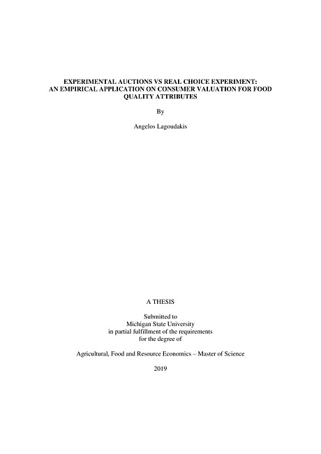 Experimental auctions vs real choice experiment : an empirical application on consumer valuation for food quality attributes