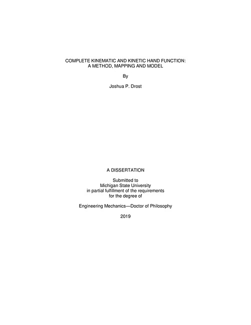 Complete kinematic and kinetic hand function : a method, mapping and model