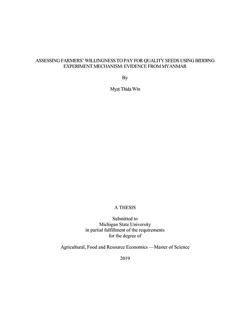 Assessing farmers' willingness to pay for quality seeds using bidding experiment mechanism : evidence from Myanmar