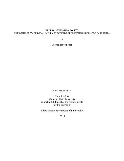 Federal education policy : the complexity of local implementation: a promise neighborhood case study