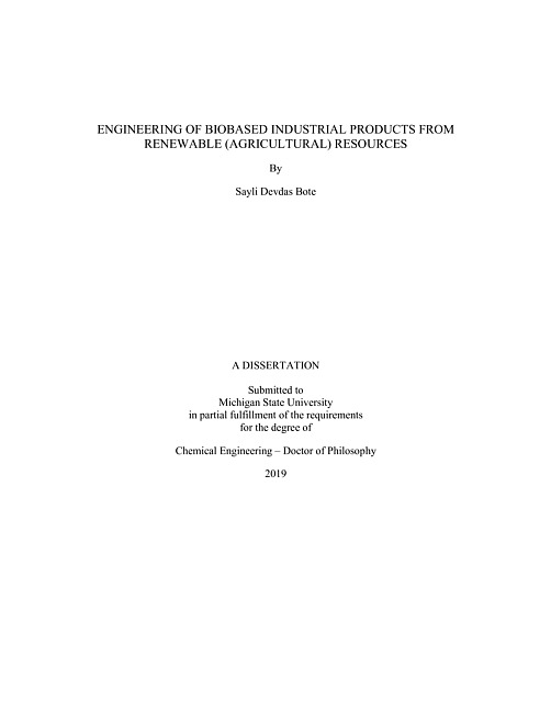 Engineering of biobased industrial products from renewable (agricultural) resources