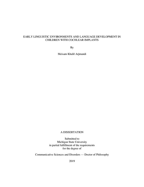 Prior research has documented tremendous variability in language outcomes of children with cochlear implants (CIs); despite more than a decade of research, a large portion of this variability remains unexplained. This study characterized the quantity and quality of early linguistic input in naturalistic environments of 14 early-implanted children with CIs to investigate variability across children as a possible source of variation that might help explain language outcome variability. In Chapter 2, daylong audio recordings from home environments of these children were analyzed to examine individual variability in language input they experienced in terms of lexical, morphosyntactic, and social-pragmatic properties. It was found that the quantity and quality of early language input varies substantially across children with CIs, where the degree of variability was comparable in magnitude to what has been reported between the most-advantaged and least-advantaged typically hearing children. In Chapter 3, estimates of the quantity and quality of language input were adjusted to consider environmental noise and reverberation to better represent the "useable" amount of input experienced by the children. It was found that children with CIs are differentially impacted by noise and reverberation in their naturalistic environments, such that some children are doubly disadvantaged in acquiring spoken language, both due to substantial variability in the amount and quality of linguistic input available to them, as well as due to their exposure and susceptibility to environmental noise and reverberation. In Chapter 4, an initial test was conducted to obtain preliminary results regarding how language input factors might shape development of language outcomes in children with CIs. The preliminary results estimating the contribution of language input measures to language outcomes of the children with CIs suggested that measure of speech intelligibility tailored to children with CIs strongly predicted language outcomes. Overall, this study has provided evidence for substantial individual variability across children with cochlear implants in quantity and quality of their early language experience, which were mainly influenced by factors of child-directed speech and environmental noise and reverberation. This evidence-based knowledge can be used by parents and clinicians to effectively adjust early linguistic environments of children with CIs to maximize the advantage of using CIs.