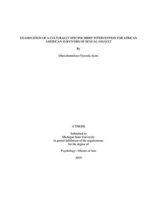 Examination of a culturally specific brief intervention for African American survivors of sexual assault