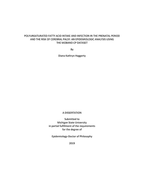 Polyunsaturated fatty acid intake and infection in the prenatal period and the risk of cerebral palsy : an epidemiologic analysis using the MOBAND-cp dataset