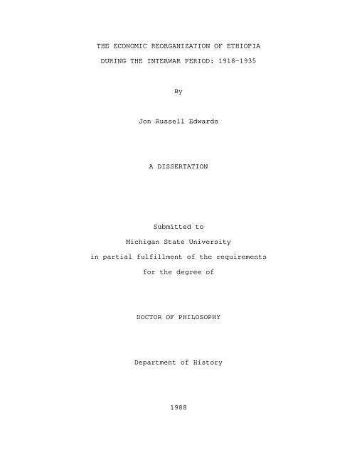 The Economic Reorganization of Ethiopia During the Interwar Period : 1918-1935