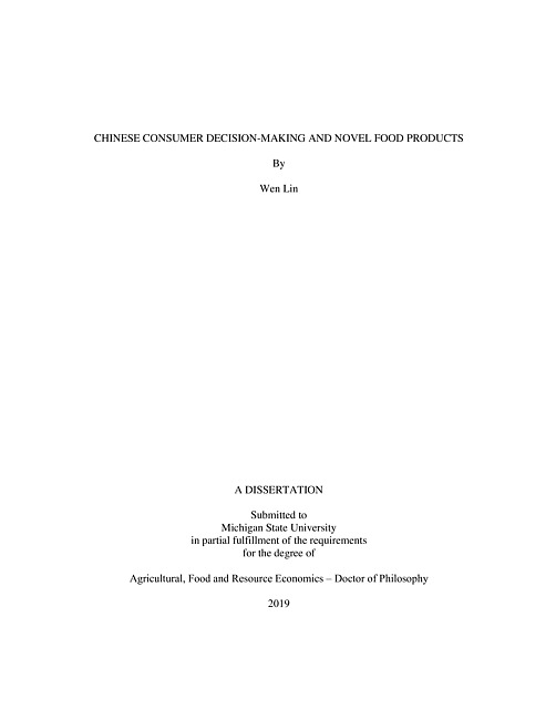 "Consumers are shaping the food and agricultural system, thus a better understanding of their food preferences and purchasing behavior is needed in order to provide decision supports for agricultural producers and agribusinesses. Experimental methods provide an alternative to investigate consumer preference and demand for innovative food products, allowing for explicitly modelling the cognitive and behavioral mechanisms that influences individual decision-making. This dissertation leverages discrete choice experiments to better understand the consumer food decision-making process and also informs methodological issues associated with stated preference methods. The first essay assesses the effects of three ex-ante hypothetical bias mitigation methods on Chinese consumer's stated online food shopping behavior: a cheap talk script, the solemn oath and honesty priming. Using data from choice experiments, my analysis finds no significant differences in willingness to pay (WTP) values for all product attributes between the various mitigation methods and a control group, implying that hypothetical bias is not likely a significant concern when using internet-based choice experiments to elicit marginal WTP values for online food product characteristics. I discuss how e-commerce can better address consumer needs and explain the importance of my findings for study design and future research on consumer online food shopping behavior.Acceptance of food products from these animals is expected to be controversial and requires a thorough understanding of consumer preferences. The second essay explores the role of personality, measured via the Big Six personality traits, on consumer acceptance of a genetically modified pork product in the US, China and Italy. I find that the effect of personality is most evident in US consumers with five out of six personality traits explaining preferences for genetically modified pork. Openness is the only trait that consistently explains consumer acceptance in the three countries, and conscientiousness is found to be a good predictor in Western cultures. This result reinforces the importance of capturing psychological characteristics of consumers to understand controversial food acceptance and highlights the differential impact of personality across cultures.Food valuation studies have employed a wide range of product quantities in designing their experiments, assuming that individual preferences are constant, not affected by the framing effect of product quantity. However, this assumption may not hold from the perspective of mental budgeting. The third essay investigates whether and why experimental quantities employed by food valuation studies affect consumer food choice behaviors. Two DCE designs are evaluated: one being the traditional design with 500 grams; the other allowing the unit to be matched with respondent's self-reported quantity per purchase. I find that in the traditional design, consumers' price sensitivities and the probability to opt-out from making a purchase decrease as their actual purchase quantities (and default budgets) increase. These discrepancies in choice behavior are mitigated in the matched design. As most respondents purchase more than 500 grams in real life, the marginal WTPs for most product attributes are biased upward in the traditional design. I also propose a novel design that provides more relevant preference estimates and could be incorporated in the various experimental settings."--Pages ii-iii.