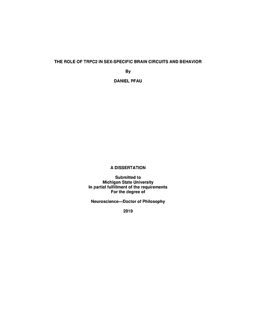 The role of trpc2 in sex-specific brain circuits and behavior