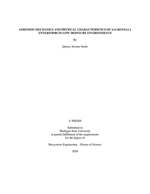 Adhesion mechanics and physical characteristics of Salmonella enteritidis in low moisture environments