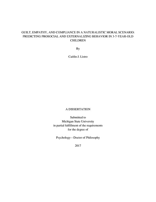 Guilt, empathy, and compliance in a naturalistic moral scenario : predicting prosocial and externalizing behavior in 3-7-year-old children