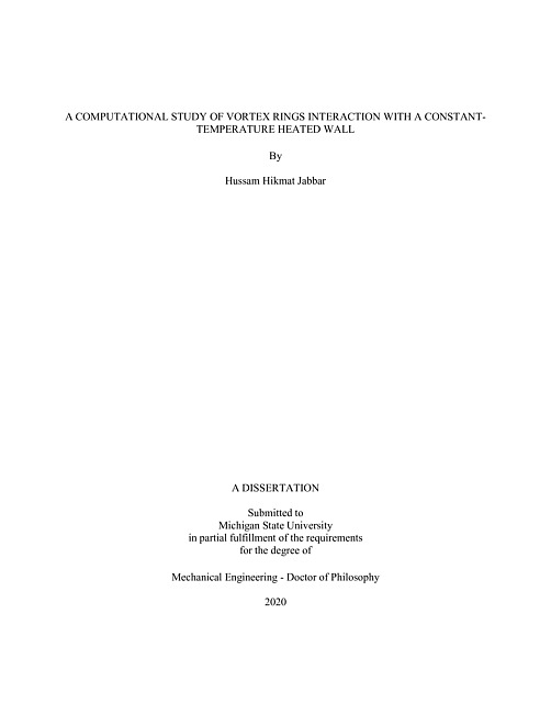 This study is motivated by understanding the connections between the vortical structures in impinging jets and the wall heat transfer. The particular objectives of the study are: (1) examining how the stage of evolution of vortex pairing in the jet might influence the wall heat transfer; (2) establishing correlations between the vortex characteristics and the Nusselt number (Nu) distribution; (3) exploring the physics of the thermal boundary layer behavior and the associated near-wall flow that causes the enhancement and the deterioration in heat transfer during vortex-wall interaction; and finally (4) evaluating a newly published hypothesis of the mechanisms of the heat transfer enhancement and deterioration during this interaction. To address the first two objectives, CFD simulations are conducted of three simplified model problems involving the interaction of isolated axisymmetric vortex rings with a flat, constant-temperature, heated wall. The cases represent three scenarios of vortex-wall interaction: before (Case I), during (Case II) and after (Case III) pairing. The results show that when two vortices concurrently interact with the wall and undergo pairing (Case II), a significant instantaneous enhancement in Nu is attained in comparison to that associated with a single vortex interacting with the wall (Cases I and III). In all three cases, a deterioration in Nu is observed simultaneously with the enhancement (but at different radial locations) due to the formation of the secondary vortex (SV). However, the net effect of vortex-wall interaction on the heat transfer remains positive with Case II producing the highest heat transfer rate than the other cases.Two additional CFD cases are conducted to address the third objective. Both cases are the same as Case I except for one parameter. In the first of the additional cases, the thermal diffusivity is set to zero (=0) to understand the role of diffusion in heat transfer enhancement. Analysis of this case is complemented with a simple analytical model based on the unsteady 1D energy equation with wall-normal (axial) velocity perturbation. The results lead to the hypothesis that the axial velocity induced by the primary vortex (PV) toward the wall is the main factor for enhancement of the heat transfer on the downwash side of the vortex core by causing thinning of the thermal boundary layer (TBL). Thermal diffusion is found to limit this enhancement and cause the TBL to thicken when the downwash velocity weakens.In the second of the additional cases, the wall shear stress is set to zero (=0) to eliminate separation of the boundary layer, and hence evaluate the role of separation in deterioration of Nu. As in the case of Nu enhancement, the results show that the axial velocity is the leading factor driving the Nu deterioration. Surprisingly, eliminating separation leads to even smaller minimum Nu; found to be caused by closer approach of the PV toward the wall in the absence of the secondary vortex (due to separation elimination). Nevertheless, the overall effect of eliminating separation is positive since the closer proximity of the PV to the wall also causes significant Nu enhancement on the downwash side, producing a net positive Nu change.Finally, trajectories of selected fluid particles are tracked in a thermofluidic boundary-layer-resolved Lagrangian analysis in order to evaluate a recently published "surface renewal model" that explains the mechanisms of heat transfer due to vortex-wall interaction. The results show that while some elements of this hypothesis, regarding the heat transfer enhancement on the downwash side, are valid, the hypothesis is based on the wrong physics when it comes to the heat transfer deterioration on the upwash side.