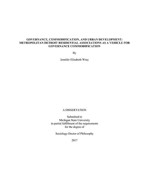 Governance, commodification, and urban development : metropolitan Detroit residential associations as a vehicle for governance commodification