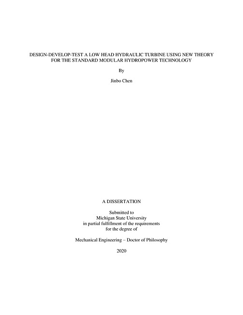 Design-develop-test a low head hydraulic turbine using new theory for the standard modular hydropower technology