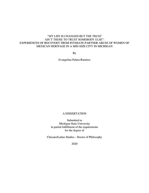"My life is changed but the trust ain't there to trust somebody else" : experiences of recovery from intimate partner abuse of women of Mexican heritage in a mid-size city in Michigan