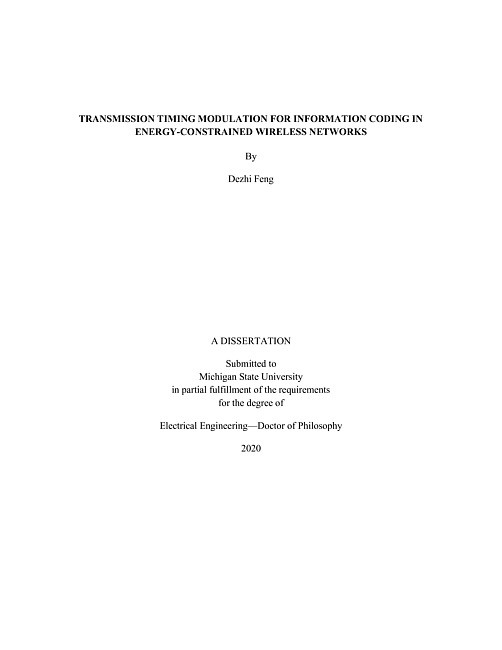 The objective of this thesis is to develop a framework of transmission timing-based modulation framework for improving energy efficiency, security, and information transfer capacity in embedded wireless networks with very thin energy budgets. The key idea is to modulate both intra-PDU (Protocol Data Unit) and inter-PDU timing for addressing energy, security, and information transfer capacity in wireless embedded networks. As for energy efficiency, we developed a novel pulse position-coded PDU (PPCP) paradigm. The core idea is to encode a protocol data unit (PDU) in terms of the silence duration between two sets of delimiter pulses, whose positions are modulated based on the value of the PDU. This PPCP architecture achieves significant energy savings by using a lesser amount of bit/pulse transmissions, and by eliminating long multi-bit preambles and headers, which are normally used in traditional packets. The proposed multi-access pulse-based PDU scheme enables medium sharing among many sensor nodes without requiring per-PDU frame synchronization. As for security, we developed the concept of a novel chaotic pulse position coded protocol data unit (CPPCP) for secure embedded networking. The core idea of CPPCP is to encode a protocol data unit (PDU) with a wideband pulse train with chaotically-varied inter-pulse intervals. The architecture ensures communication security by introducing randomness between data symbols, noise-like frequency spectrum, and significant energy savings by using a smaller number of pulse transmissions compared to existing secure coding schemes such as Bluetooth Low Energy (BLE). Compared with the traditional key-based cryptographic techniques, CPPCP suppresses decipherable information by eliminating symbol periodicity. The mechanism can also be piggy-backed on traditional cryptography solutions to achieve higher levels of security. Finally, for enhancing the information transfer capacity, we developed a data packet position modulation (DPPM) paradigm. Packet transmissions in low duty cycle networks are often scheduled as TDMA slots, whose periodicity is determined based on application sampling requirements and the energy in-flow, often in the form of energy harvesting. The key idea of DPPM is to modulate the inter-packet spacing for coding additional information without incurring additional transmission energy expenditures. We first developed a have a DPPM based networking solution for single-hop transmit-only networks in which a number of low-energy nodes transmit data to an aggregator. The architecture is developed for a two-node point-to-point link, followed by a multipoint-to-point multi-access network. Detailed analytical and simulation models are developed to demonstrate the performance of a symmetric and an asymmetric version of DPPM.