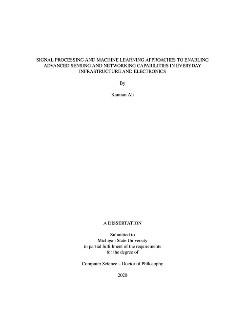 Signal processing and machine learning approaches to enabling advanced sensing and networking capabilities in everyday infrastructure and electronics