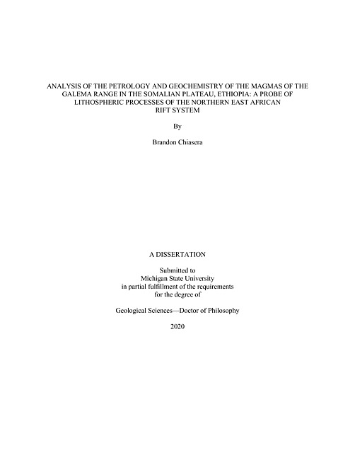 Analysis of the petrology and geochemistry of the magmas of the Galema range in the Somalian Plateau, Ethiopia : a probe of lithospheric processes of the northern east African rift system