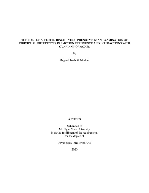 The role of affect in binge eating phenotypes : an examination of individual differences in emotion experience and interactions with ovarian hormones