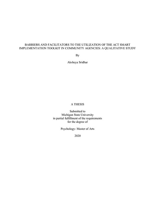 Barriers and facilitators to the utilization of the ACT SMART implementation toolkit in community agencies : a qualitative study