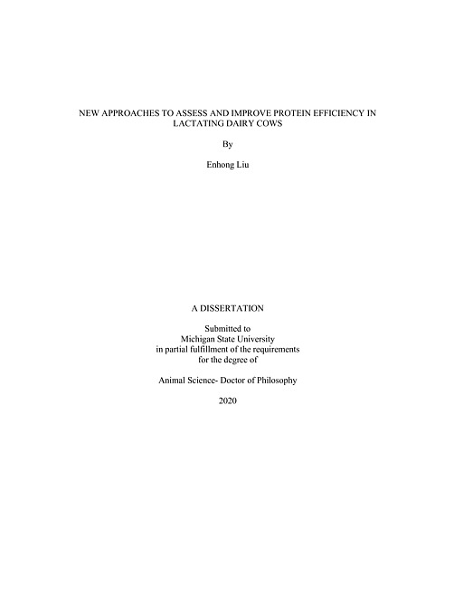New approaches to assess and improve protein efficiency in lactating dairy cows