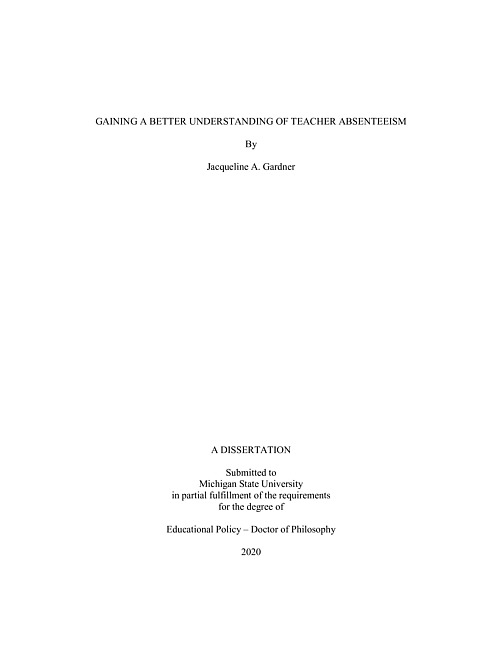 This study explores the reasons for chronic teacher absenteeism, which is a growing concern in Michigan schools and districts because teacher absenteeism is expensive and has implications for student learning. In total, 21 elementary teachers from seven different Michigan school districts were interviewed about their experiences with and perceptions of teacher absenteeism. Using an interpretive lens from the management literature on employee absenteeism, this study finds chronically absent teachers used paid time off for job-related mental health more often than for personal reasons compared to non-chronically absent teachers. The contributors to job-related mental health include three elusive, intangible characteristics: job stress, low perceived organizational support, and job dissatisfaction. The sources of job stress, low perceived organizational support, and job dissatisfaction are negative student behaviors, large class sizes, accountability pressures, lack of building support, lack of administration support, increased workload, performing additional duties above and beyond teaching, and not having enough district financial support for classroom materials and resources. The findings suggest organizational factors, or challenges with school and district culture and climate, contribute to chronic teacher absenteeism and must be improved upon. Implications for research, policy, and practice are discussed, along with opportunities for future research on both chronic teacher absenteeism and the culture and climate of schools and districts.