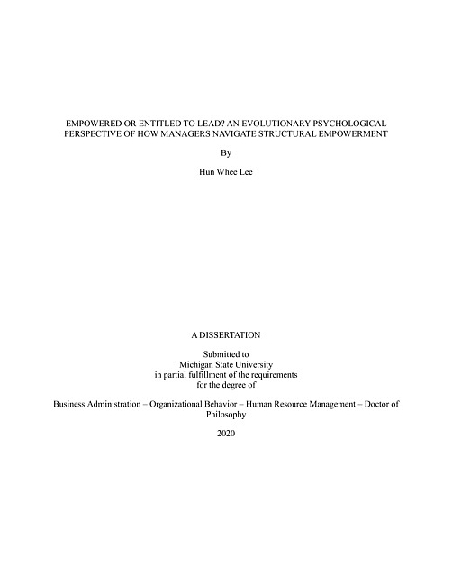 Empowered or entitled to lead? : an evolutionary psychological perspective of how managers navigate structural empowerment