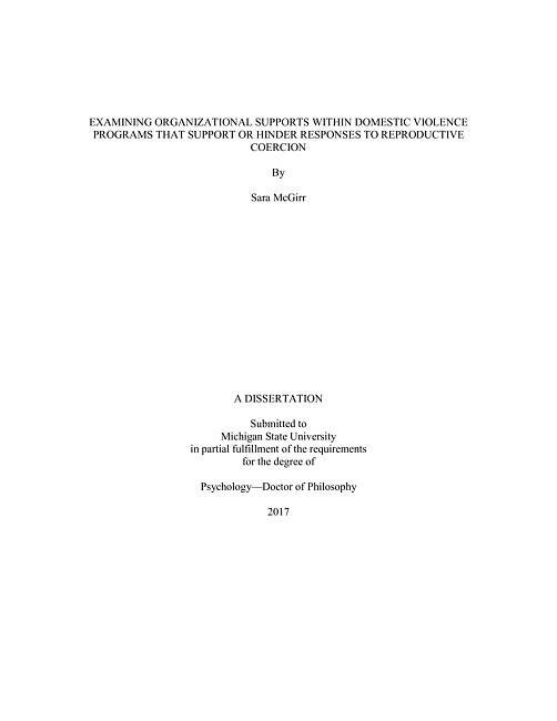 Examining organizational supports within domestic violence programs that support or hinder responses to reproductive coercion