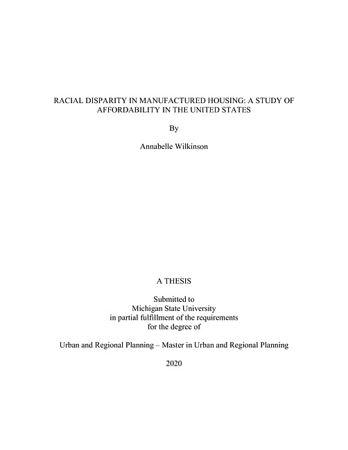 Racial disparity in manufactured housing : a study of affordability in the United States
