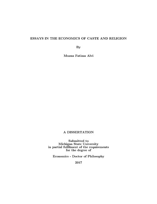 Through my dissertation, I aim to uncover the processes that govern the relationship between social or ethnic identity and economic outcomes such as employment and education. I focus in particular on studying outcomes for Muslim women in India who have remained on the fringes of economic enquiry. A majority of the literature on economic exclusion in India has focused on caste based discrimination, which is warranted given the acute poverty and deprivation faced by lower caste communities in the country. However, despite being comparable on measures of economic, social and educational deprivation, Indian Muslims have remained absent from the development discourse in the country. I hope my research will contribute to filling this lacuna in the literature.The first chapter examines the evolution of labor force participation rate (LFPR) differences between women from the Hindu, Schedule Caste/Schedule Tribe (SC/ST) and Muslim communities in India. I find that affirmative action policies have led to convergence in the education levels of Hindus and SC/ST which has consequently led to a narrowing of the LFPR gap of the two groups, however, the Hindu-Muslim gap in female labor participation remains persistently high. I find that part of the religious gap is explained due to Muslim women being trapped in enclaves of low economic development due to a combination of Muslim ghettoization and relatively localized marriage markets. Contrary to popular rhetoric, I find that culture does not play a big role in explaining the absence of Muslim women from the labor force. In the second chapter my coauthor Dr Maitreyi Bordia Das and I, study the causes for large differences in female labor force participation between West Bengal and Bangladesh. Despite historical and cultural commonalities, both regions exhibit very different levels of socio-economic development, one of which is the wide disparity in female labor force participation. We find that observable covariates do not play a major role in explaining the wide gap in female LFPR between the two regions. This is driven by the fact that in West Bengal, much like the rest of India, higher levels of education and improvements in social status leads to withdrawal of women from the labor force. On the other hand, we find the opposite to be true in Bangladesh. In comparing Muslims on either side of the border, our results remain qualitatively similar to the aggregate results. We conclude that the differing political trajectories followed by the two regions have created widely varying economic structures which have in turn led to divergent demands for female labor in the two countries- the most obvious of which is the decline of agriculture in West Bengal and the continued flourishing of both agriculture and manufacturing in Bangladesh. The third chapter aims to study the impact of communal violence in India on the schooling and education decisions of Muslims in India. The causes and consequences of violent conflict, particularly civil war, mass violence and ethnic conflict, has attracted considerable scholarly attention across disciplines. However, there is much less research on the how small isolated and geographically dispersed incidences of violence can lead to long term deficit in human capital accumulation for entire communities. This effect could be driven by the immediate loss of life and livelihood following conflict. However, repeated conflict also ingrains a culture of fear in the minds of the victimized community that implicitly determines economic behavior in the long-run. My paper deals with one such group, namely Indian Muslim. I use data on religious violence from 1950-2006 combined with data on education from several consecutive rounds of the National Sample Survey (NSS) on Employment and Unemployment (Schedule 10) and Participation in Education (Schedule 25.2) covering the period between 1983 and 2014. My results suggest that both contemporaneous and cumulative violence has no effect on the educational outcomes and dropout decision of Muslim girls and boys.