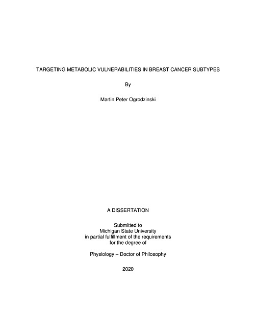 Targeting metabolic vulnerabilities in breast cancer subtypes