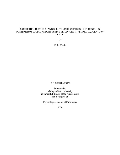Motherhood, stress, and serotonin receptors : influence on postpartum social and affective behaviors in female laboratory rats
