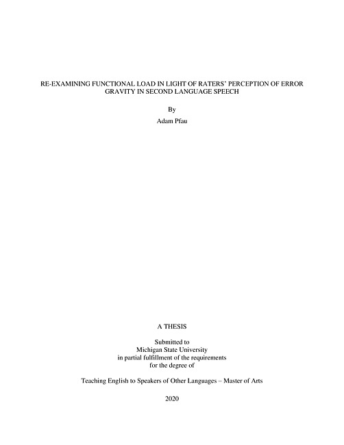 Re-examining functional load in light of raters' perception of error gravity in second language speech