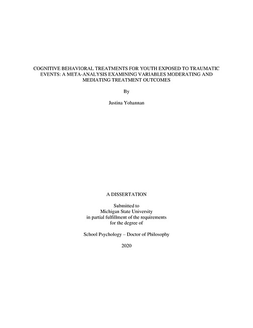 Cognitive behavioral treatments for youth exposed to traumatic events : a meta-analysis examining variables moderating and mediating treatment outcomes