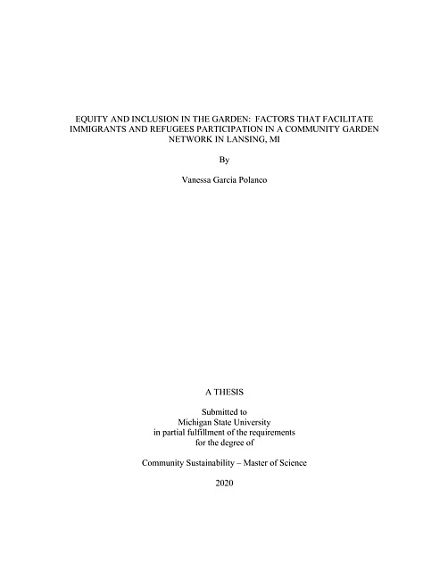 Equity and inclusion in the garden : factors that facilitate immigrants and refugees participation in a community garden network in Lansing, MI